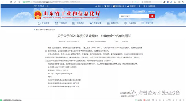 海普歐環(huán)保憑借著優(yōu)秀的自主創(chuàng)新能力以及良好的發(fā)展勢頭得到了山東省工業(yè)和信息化廳的認(rèn)可,成功獲得2021年瞪羚企業(yè)稱號。本次入選2021年瞪羚企業(yè)榜單,標(biāo)志著海普歐環(huán)保邁入發(fā)展的新階段!