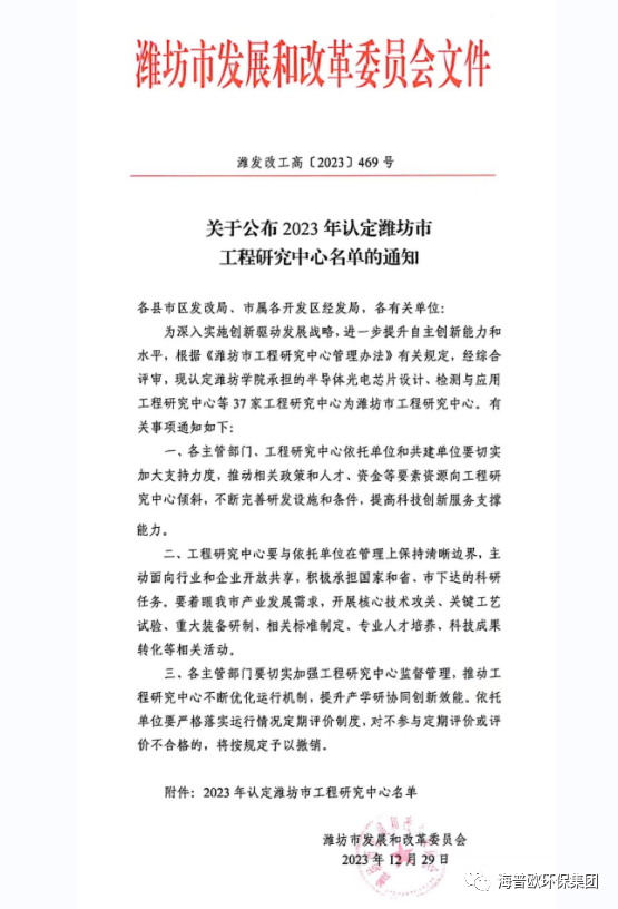 這次認定不僅是對海普歐環(huán)保集團技術實力的肯定,也是濰坊市工程研究中心對數(shù)字化污水處理領域的關注與支持。